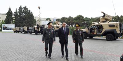 Sonda Prezident, Silahlı Qüvvələrin Ali Baş Komandanı İlham Əliyev müxtəlif təyinatlı zirehli döyüş maşınlarına baxdı.
