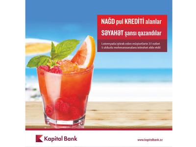 Bankdan verilən məlumata görə, mütəmadi olaraq müxtəlif aksiyalar təqdim edən Kapital Bank iyun-iyul ayları ərzində “Dincəlmək vaxtıdır” adlı stimullaşdırıcı lotereya keçirib. Lotereyanın nəticələrinə əsasən, Bankın 37 müştərisi səyahət paketi qazanıb.