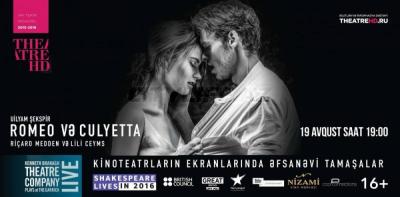 Avqustun 19-da Nizami Kino Mərkəzinin ekranında U.Şekspirin “Romeo və Cülyetta” əsəri əsasında səhnələşdirilən eyniadlı tamaşa nümayiş olunacaq.