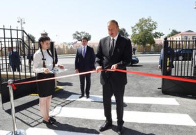 Dövlət başçısı uşaq bağçasının rəmzi açılışını bildirən lenti kəsib.