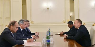 Prezident İlham Əliyev Rusiya Federasiyasının müdafiə naziri Sergey Şoyqunun başçılıq etdiyi nümayəndə heyətini qəbul edib.