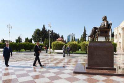 “Dövlət başçısı xalqımızın ümummilli lideri Heydər Əliyevin Xaçmaz şəhərinin mərkəzində ucaldılmış abidəsini ziyarət edib, önünə gül dəstəsi qoyub.