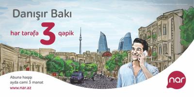 “Nar” yeni “Danışır Bakı” tarifini paytaxtdakı istifadəçilərinə təqdim edib. İndi Bakı sakinləri bu tariflə ölkədaxili bütün istiqamətlərə 3 qəpiyə danışa biləcək, üstəlik aylıq 300 SMS və 300 MB internet trafiki əldə edəcəklər. Aylıq abunə haqqı 3 AZN təşkil edən “Danışır Bakı” tarifi çərçivəsində hər tərəfə zəngin dəqiqəsi və ya 1 SMS-in dəyəri 3 qəpik, 1 MB internetin qiyməti isə cəmi 29 qəpikdir.