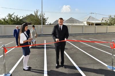 Dövlət başçısı məktəbin binasının rəmzi açılışını bildirən lenti kəsdi və burada yaradılan şəraitlə tanış olub.