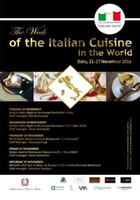 Tədbir noyabr ayının 21-27-də bütün dünyada keçirilən İtaliya mətbəxi həftəsi çərçivəsində baş tutacaq.