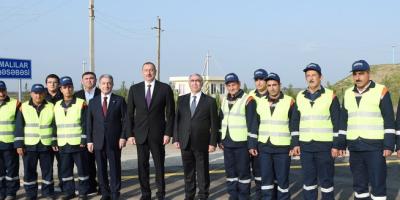 Prezident İlham Əliyev Beyləqan rayonuna səfəri çərçivəsində əsaslı yenidənqurma və bərpadan sonra istifadəyə verilən Birinci Şahsevən-Əhmədli-Dünyamalılar avtomobil yolunda yaradılan şəraitlə tanış olub.