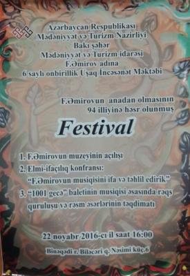 Noyabrın 22-də unudulmaz bəstəkar Fikrət Əmirovun adını daşıyan 6 nömrəli onbirillik Uşaq İncəsənət Məktəbində musiqili tədbir təşkil olunacaq.