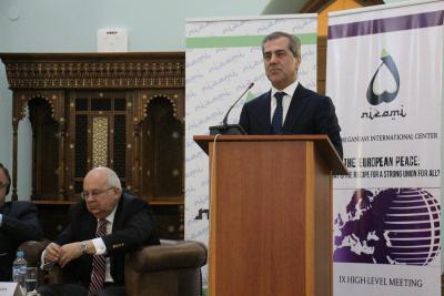 Toplantının açılışında Mladen İvaniç, Petar Stoyanov, Nazim İbrahimov və İsmail Seragəldin çıxış ediblər. “Avropda sülh: Möhkəm birliyə necə nail olmaq olar” mövzusu çərçivəsində müzakirələr aparılıb. Bosniya və Herseqovina, eləcə də Balkanlar üçün Avropa gələcəyinin mövcudluğu, Avropanın yeni xəritəsi, Avropada multikulturalizmi bərpa etməyin yolları kimi məsələlər ətrafında geniş fikir mübadiləsi aparılıb. Görüşdə çıxış edən Nazim İbrahimov Azərbaycanın multikulturalizm və uzun illərə söykənən dinlərarası tolerantlıq təcrübəsindən danışıb. Daha sonra ölkəmizin Ermənistan-Azərbaycan, Dağlıq Qarabağ münaqişəsinə cəlb olunduğunu xatırladan Nazim İbrahimov 25 ildən çoxdur ki, Azərbaycanın 20 faiz ərazisinin işğal altında qaldığını diqqətə çatdırıb. Çıxışında Nizami Gəncəvi Beynəlxalq Mərkəzinin fəaliyyətini yüksək qiymətləndirən Dövlət Komitəsinin sədri Mərkəzin yarandığı 5 il ərzində artıq 4 qlobal forum keçirdiyini qeyd edərək Azərbaycan Prezidenti İlham Əliyevin təşkilatın fəaliyyətini dəstəklədiyini vurğulayıb.