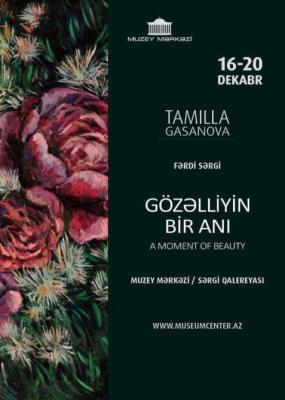 Dekabrın 16-da Muzey Mərkəzinin sərgi qalereyasında gənc rəssam Tamilla Həsənovanın “Gözəlliyin bir anı” adlı fərdi sərgisi açılacaq.