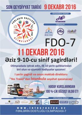 Azərbaycan Respublikası Prezidenti yanında Bilik Fondu, Azərbaycan Universiteti və “Hədəf” kurslarının birgə təşkilatçılığı ilə dekabrın 11-də VII “Fənlərin dostluğu” olimpiadası keçiriləcək.
