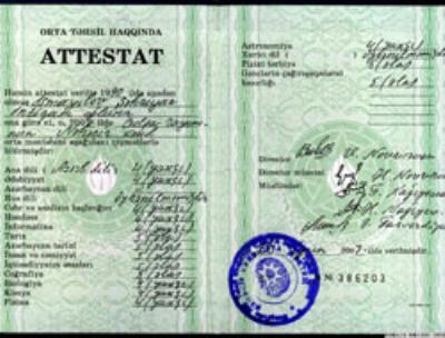 Ümumi orta təhsil səviyyəsini xüsusi nailiyyətlərlə başa vuran məzunlara ümumi orta təhsil haqqında fərqlənmə attestatı, digər hallarda isə ümumi orta təhsil haqqında adi attestat verilir.