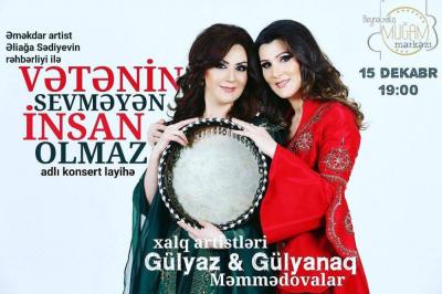 Dekabrın 15-də Beynəlxalq Muğam Mərkəzində Xalq artistləri Gülyaz və Gülyanaq Məmmədovaların solo konserti olacaq.