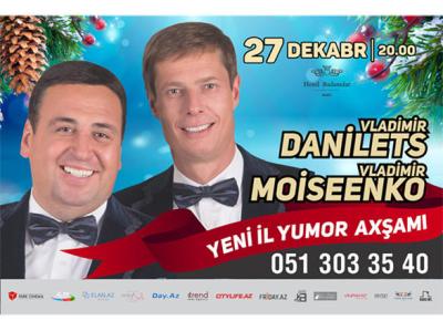 Популярный юмористический дуэт Владимир Данилец и Владимир Моисеенко в преддверии концерта "Новогодний вечера юмора", который состоится 27 декабря в 20.00 на сцене "Аудиториум Холл" Hotel Badamdar Baku, в своем видеобращении поздравляют бакинцев с наступающим 2017 годом и приглашают на свой концерт. Владимир Данилец и Владимир Моисеенко впервые выступят в Баку и представят свои лучшие номера.