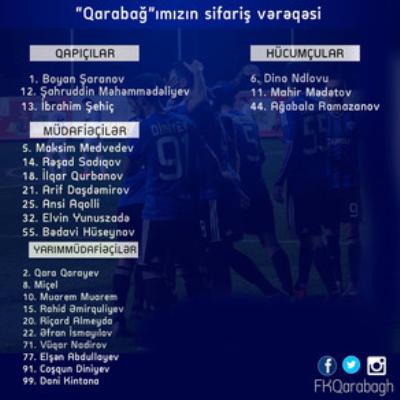 "Qarabağ" klubu futbol üzrə Azərbaycan Premyer Liqasında mövsümün ikinci yarısı üçün sifariş ərizəsini təqdim edib. Peşəkar Futbol Liqasına göndərilən siyahıda 23 futbolçu yer alıb.