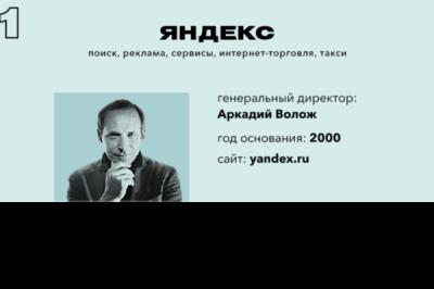 "Forbes”ə istinadən xəbər verilir ki, runetdə 5-10 milyon dollar dəyərində İT şirkətləri peyda olub. Jurnal onlar arasında ən çox bazar dəyərinə sahib olanların siyahısını tərtib edib. Həmin rekinqə görə, birinci sırada "Yandex” gəlir.