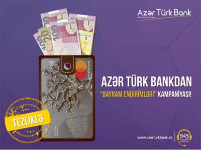 Bankdan verilən məlumata görə, mart ayı boyunca, etibarlılıq müddətindən asılı olmayaraq, MasterCard Gold, MasterCard Platinum, MasterCard Business, Visa Gold və ya Visa Platinum debit kartları sifariş edən hər kəs 50 faiz həcmində endirim əldə edəcəkdir. Arzu edənlər bu kartları şəxsiyyəti təsdiq edən sənədlə bankın filial və şöbələrində, eləcə də www.azerturkbank.az saytından onlayn sifariş edə bilərlər.