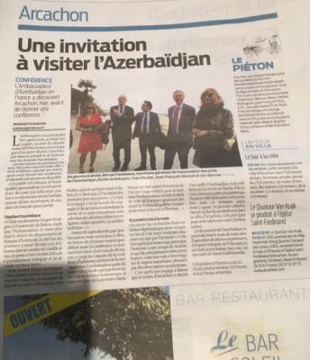 Məqalədə Azərbaycanın Fransadakı səfiri Elçin Əmirbəyovun Arkaşon şəhərinə səfərindən, orada konfransda iştirakından və ölkəmizlə bağlı filmdən bəhs olunur.