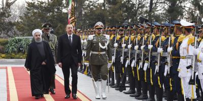 Azərbaycanın və İranın dövlət bayraqlarının dalğalandığı “Sədabad” sarayının qarşısındakı meydanda Prezident İlham Əliyevin şərəfinə fəxri qarovul dəstəsi düzülmüşdü.