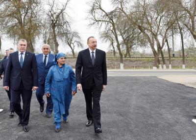 28 марта Президент Азербайджанской Республики Ильхам Алиев ознакомился с хлопковым полем фермера Хумай Мамедовой на территории села Гыраглы Саатлинского района.azertag.az