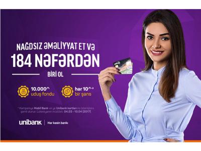 "Unibank" sizə cəmi bir əməliyyatla 1000 manatadək pul mükafatı qazanmaq şansı yaradır. Bank kartınızla və yaxud Unibanl Mobile-la etdiyiniz hər 10 AZN-lik əməliyyat sizi lotereya qalibləri siyahısına sala bilər.
