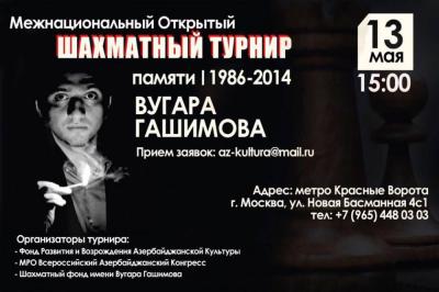 Mayın 13-də Moskvadakı Millətlər Evində Avropa çempionu, dünyanın aparıcı şahmatçısı mərhum Vüqar Həşimovun xatirəsinə həsr olunmuş beynəlxalq açıq turnir keçiriləcək.