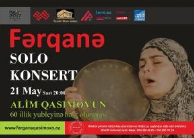 Əməkdar artist, xanəndə Fərqanə Qasımova solo konsert verəcək.