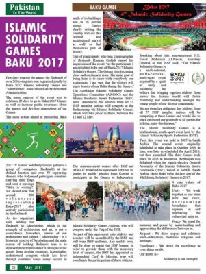 Pakistanın “Pakistan in the World” jurnalı və portalında “İslam Həmrəyliyi Oyunları – Bakı 2017” sərlövhəli məqalə verilib.