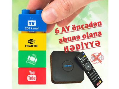 "Caspian Telecom" mətbuat xidmətindən verilən məlumata görə, 6 ayın abunə haqqını (60 azn) öncədən ödəməklə yeni və daha güclü Ailə TV Player cihazını pulsuz əldəcəksiniz.