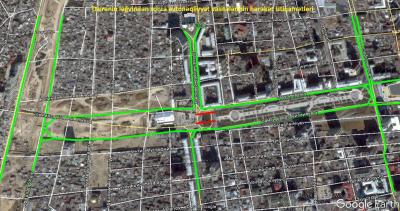 Автотранспортные средства перенаправлены на улицу Ислама Сафарли, и пользуясь ею, водители могут выехать на улицу Шихали Гурбанова.