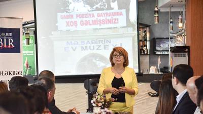 Görüşdə çıxış edən Fondun prezidenti Sevda Tahirli hər il M.Ə.Sabirin doğum günü ərəfəsində bu cür tədbirlərin keçirilməsinin bir adət halını aldığını bildirib. Daha sonra S.Tahirli Fondun məhz dahi şairin maarifçilik ideyalarını davam etdirmək üçün yaradıldığını vurğulayıb: “2012-ci ildə yaradılmış Mirzə Ələkbər Sabir Fondunun məqsədi Mirzə Ələkbər Sabir yaradıcılığının öyrənilməsi və irsinin tədqiqindən ibarətdir. Həmçinin bu irsi gənclər arasında təbliğ etmək, Sabir irsinin öyrənilməsinə gənc araşdırmaçıları cəlb etmək,habelə onun yaradıcılığının beynəlxalq aləmdə tanınmasına yardımçı olmağa çalışırıq. Fəaliyyətimiz müddətində xidmət sahəsində dil qaydalarının qorunması istiqamətində monitorinqlər aparmışıq. Axundov adına Milli Kitabxanada virtual bələdçi hazırlamışıq, Sabirin 1912-ci ildən bu vaxta çap olunan bütün kitabları, onun haqqında yazılan kitablar hamısı elektronlaşdırılıb”.