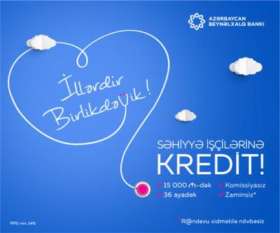 Bankdan verilən məlumata görə, ölkədəki əksər səhiyyə işçilərinin bankı olan Azərbaycan Beynəlxalq Bankı 17 iyun Səhiyyə İşçilərinin Peşə Bayramı Günü münasibətilə onlar üçün “İllərdir birlikdəyik!” şüarı altında özəl kampaniyaya başlayır. Əmək haqlarını bu bankın kartları ilə alan səhiyyə işçiləri keçirilən kampaniya çərçivəsində indi manatla nağd pul kreditini daha sərfəli şərtlərlə əldə edə bilərlər. Kampaniya 30 iyun tarixinədək keçərlidir.