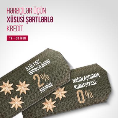 В рамках акции военнослужащие, обратившиеся в Kapital Bank, могут воспользоваться 2%-й скидкой на годовую процентную ставку. При этом комиссия составит 0%.
