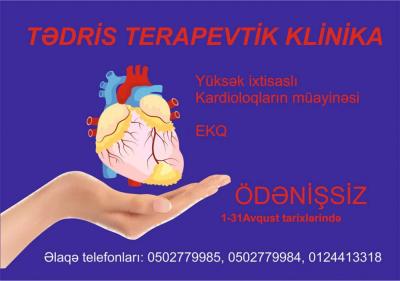 Avqustun 1-dən 31-dək Azərbaycan Tibb Universitetinin (ATU) Tədris Terapevtik Klinikasında ödənişsiz aksiya keçiriləcək.