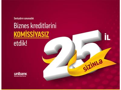 Пришло самое подходящее время для расширения своего бизнеса. В честь своего 25-летнего юбилея Unibank проводит акцию, связанную с бизнес кредитами.