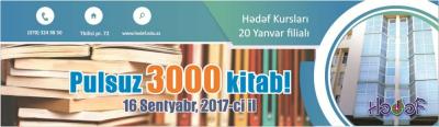 Sentyabrın 16-da “Hədəf” kurslarının təşəbbüsü ilə “Pulsuz 3000 kitab” aksiyası keçiriləcək.