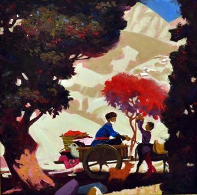 “Azərbaycanım” lövhəsində yurdumuzun dilbər guşəsində baba ilə nəvəni bir araya gətirən Xaqan Bayramov onların təbiət və yurdun nemətləri ilə təmasından aldıqları zövqü əlvan rənglərlə bədiiləşdirə bilib. Kompozisiyanın rəng həllində rənglərin lakonikliyi üstünlük təşkil etsə də, müəllif bu yığcamlıqla süjetin cəlbediciliyini və duyğulandırıcılığını əldə edə bilmişdir.