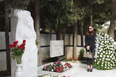 Sonra Azərbaycanın Birinci vitse-prezidenti Mehriban Əliyeva Fəxri xiyabana gələrək müasir müstəqil dövlətimizin memarı və qurucusu, xalqımızın ümummilli lideri Heydər Əliyevin xatirəsini yad edib, məzarı önünə güllər qoyub.
