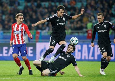 İspaniyanın "Atletiko" klubu UEFA Çempionlar Liqasının qrup mərhələsinin IV turu çərçivəsində Azərbaycanın "Qarabağ" klubuna qarşı keçirdiyi oyunda hesabı bərabərləşdirib.
