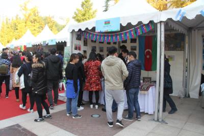 Azərbaycanın Pekindəki səfirliyinin dəstəyi ilə tələbələrimizin hazırladığı milli stenddə ölkəmizin tarixi, mədəniyyəti, incəsənəti, musiqisi, mətbəxi, müasir inkişafı, turizm imkanları haqqında əyani vəsaitlər, o cümlədən fotoşəkillər, kitablar, jurnallar, broşürlər, habelə milli suvenirlər nümayiş olunub.