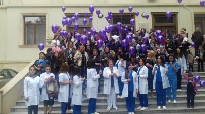 Sonra tədbir iştirakçıları foyedən bayıra çıxaraq vaxtından qabaq doğulan körpələrin simvolik rəngi sayılan çəhrayı şarları havaya uçurublar...