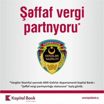 Bankdan bildiriblər ki, noyabr ayında nazirlik tərəfindən partnyor vergiödəyicisi statusunun əldə olunması münasibətilə "Kapital Bank"a bildiriş göndərilib.