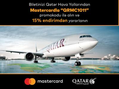 ASC Xalq Bankının MasterCard/Maestro kartların sahibləri “Qatar Airways”in rəsmi internet səhifəsində (www.qatarairways.com) onlayn bilet alışı zamanı 15 faiz endirimdən yararlana bilərlər.