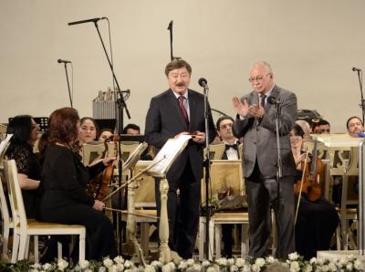 Sonra tədbir Xalq Artisti, dirijor Fəxrəddin Kərimovun rəhbərliyi ilə Ü.Hacıbəyli adına Azərbaycan Dövlət simfonik orkestrinin çıxışı ilə davam edib. Konsertdə “Koroğlu” simfonik freskası, “Şah Xətai” simfoniya-dastan, “Sonsuzluq karvanı” oratoriyasından hissələr, “Cavad xan” baletindən süita və başqa əsərlər səsləndirilib.