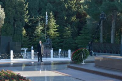 Prezident İlham Əliyev Ulu Öndərin məzarı önünə əklil qoyub.