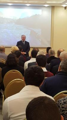 Tədbirdə çıxış edən səfir Həsən Həsənov ümummilli lider Heydər Əliyevin həyatı, fəaliyyətinin hər iki, yəni SSRİ və müstəqil Azərbaycan Respublikası dövrü haqqında iştirakçılara ətraflı məlumat verib. H.Həsənov ümummilli liderin yüksək bəşəri keyfiyyətləri, xalq işinə sədaqəti, siyasi müdrikliyi, böyük dövlətçilik təcrübəsi, parlaq hafizəsi, geniş dünyagörüşü, təvazökarlığı haqqında danışaraq, demokratik dövlət quruculuğu prinsiplərinə daim sadiq qalan böyük şəxsiyyət olduğunu bildirib. Azərbaycan Respublikasının yenidən müstəqillik əldə etdiyi ilk illərində daxili siyasi vəziyyətin sabitləşməsində, uğurlu xarici siyasətin yeridilməsində, iqtisadiyyatın inkişaf etməsində, hərbi quruculuq sahəsində misilsiz fəaliyyətindən söz açıb. H.Həsənov ümummilli lider Heydər Əliyevin Ermənistan-Azərbaycan Dağlıq Qarabağ münaqişəsinin həlli istiqamətində həyata keçirdiyi fəaliyyət üzərində dayanaraq, həmin dövrdə onun atdığı addımlar, tutduğu mövqe haqqında da toplantı iştirakçılarına məlumat verib.