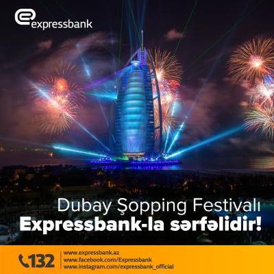 Bankdan verilən məlumata görə, artıq Expressbank-ın istənilən Visa növlü kart sahibləri Visa Explore proqramında qeydiyyatdan keçərək kartla ödəniş zamanı Dubay Şoppinq Festivalı ərzində məişət texnikası, zərgərlik və digər dükanlarda eksklüziv təkliflər əldə edəcəklər. Bu hələ son deyil. Üstəlik JumeirahTM otelləri şəbəkəsində Expressbank-ın Visa kartları ilə ödəniş zamanı qazanacağınız 25% endirimlə festival ziyarətiniz daha sərfəli olacaq.