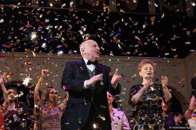 В исполнении Фуада Османова, Мабуда Магеррамова, Сафы Мирзагасанова и заслуженного артиста Салмана Байрамова прозвучали музыкальные номера из спектакля "Мусье Жордан ученый ботаник и дервиш Мастали-Шах знаменитый колдун", женская часть труппы театра также преподнесла любимому режиссеру музыкальный подарок. Ярким моментом вечера было выступление народной артистки Бриллиант Дадашевой, которая исполнила композицию из постановки "В хрустальном дворце". Номер получился красивым, лирическим, глубоким.