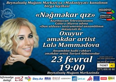 Fevralın 23-də Beynəlxalq Muğam Mərkəzində “Nəğməkar qız” adlı konsert proqramı təşkil olunacaq.