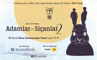 Əlilliyi olan aktyorlardan ibarət inklüziv “ƏSA” Teatrı ictimaiyyətin və çoxsaylı tamaşaçı xahişlərini nəzərə alaraq, çoxdan gözlənilən “Adamlar və siçanlar - 2” tamaşasının nümayişini həyata keçirəcək.