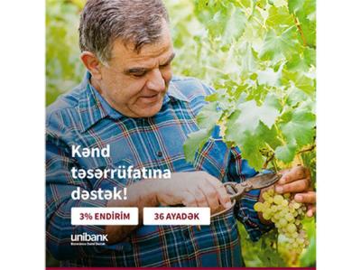 İndi Unibank-dan 300.000 AZN-dək kənd təsərrüfatı kreditini 3% endirimli alıb, biznesinizi daha da böyüdə bilərsiniz.